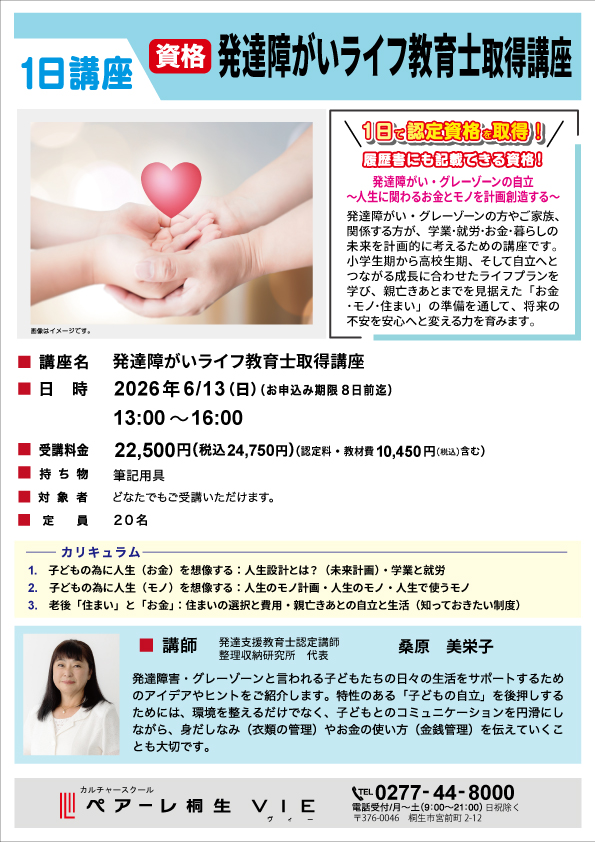 1日資格取得講座(発達障がいライフ教育士取得講座)受講生募集!